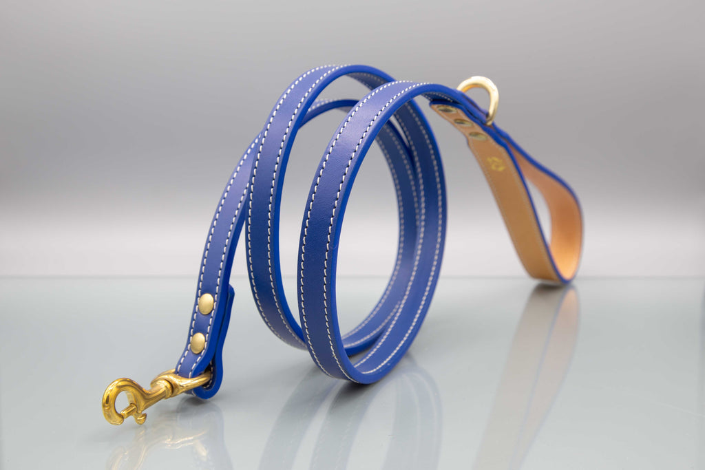 Ocean Blue Leather Dog Lead